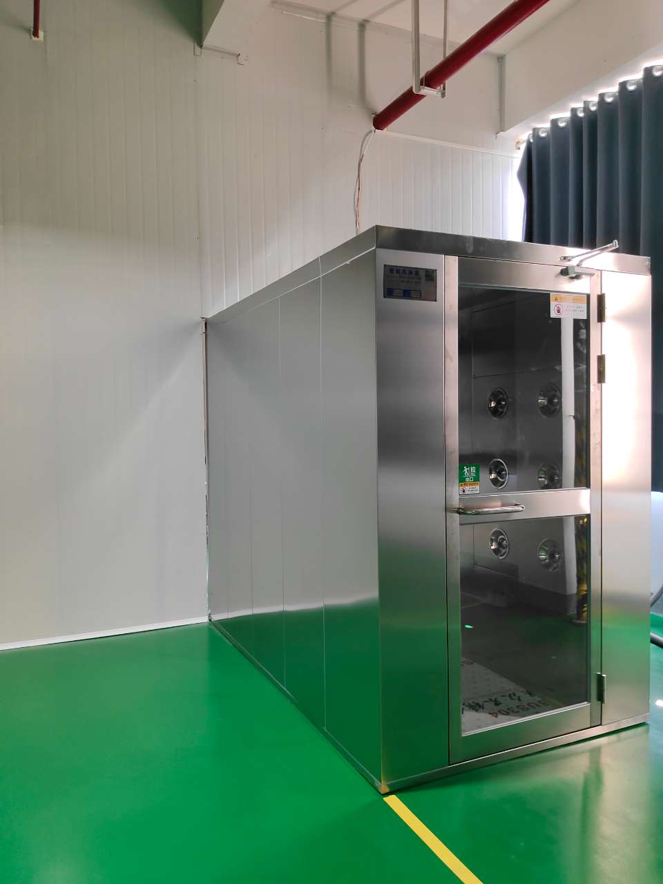連接電源和氣源:將風(fēng)淋門機(jī)身的電源線和氣源管路與外部電源和氣源連接,確保連接正確無誤,并排除漏氣或短路的情況。